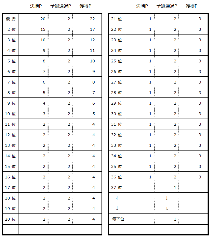 JCLOでは、年間で開催される対象大会の成績に応じて独自のポイントを付与し、年間ポイント上位者を翌年のサポート対象選手として支援しています。